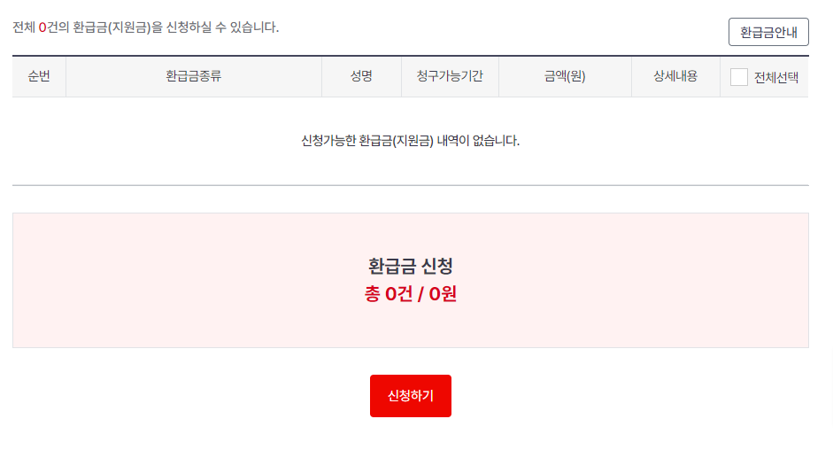 조회 결과 아쉽게도 환급금이 없었지만 개인마다 다르니 확인해 보시기 바랍니다.