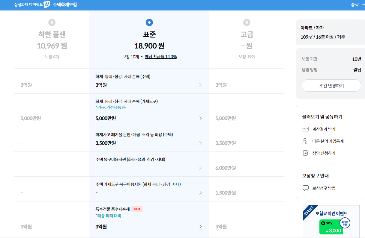 3. 삼성화재 다이렉트 주택화재보험  (월 1.9만원)