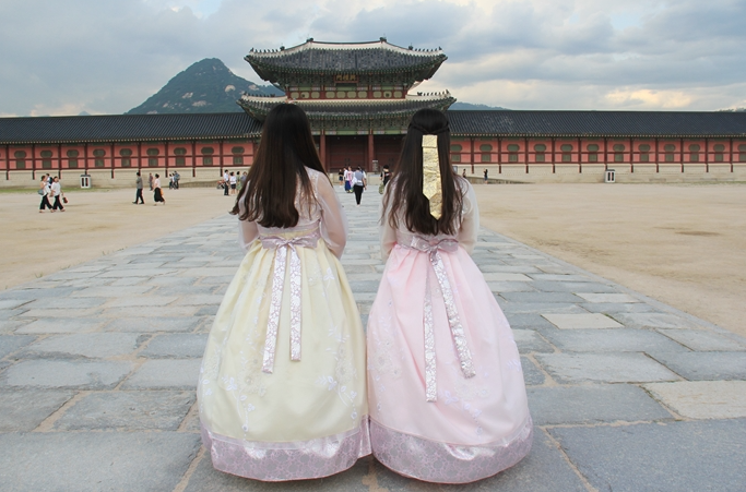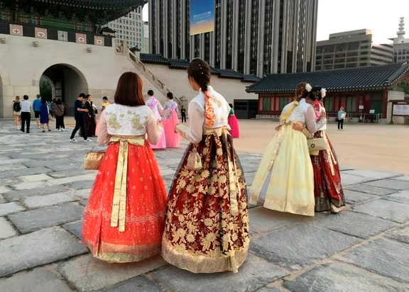 서울 경복궁 앞을 지나가다 보면 알록달록한 한복 차림의 관광객들을 쉽게 볼 수 있다. 고궁의 장엄한 풍경과 어울리는 듯하면서도, 자세히 보면 우리가 알고 있는 전통 한복과는 거리가 있는 경우가 많다. 금박이 번쩍이는 치마, 시스루 저고리, 드레스풍의 퍼지는 실루엣까지. 이른바 ‘퓨전 한복’이라 불리는 이 복장이 지금 관광객들 사이에서 가장 인기 있는 선택지다.