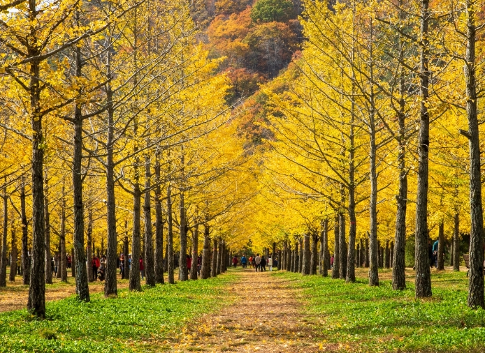 홍천 은행나무숲에서는 은행나무 사이를 거닐며 가을의 정취를 만끽할 수 있습니다. 은행나무숲 내부에는 다양한 산책로가 마련되어 있어, 가족이나 연인, 친구들과 함께 한적하게 걸으며 사진을 찍기에 최적의 장소입니다. 이곳의 은행나무들은 한 그루 한 그루 모두 정성스럽게 가꿔져 있어, 나무 아래에 떨어진 노란 은행잎이 쌓인 모습은 자연이 선사하는 최고의 예술 작품과도 같습니다.