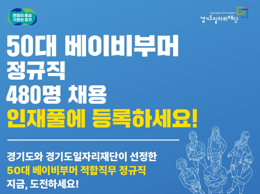 경기도 내 50~59세(1964년 1월 2일 ~ 1974년 1월1일) 에게 구직명단에 올려주고 직업상담도 해주는 지원사업이 있습니다.